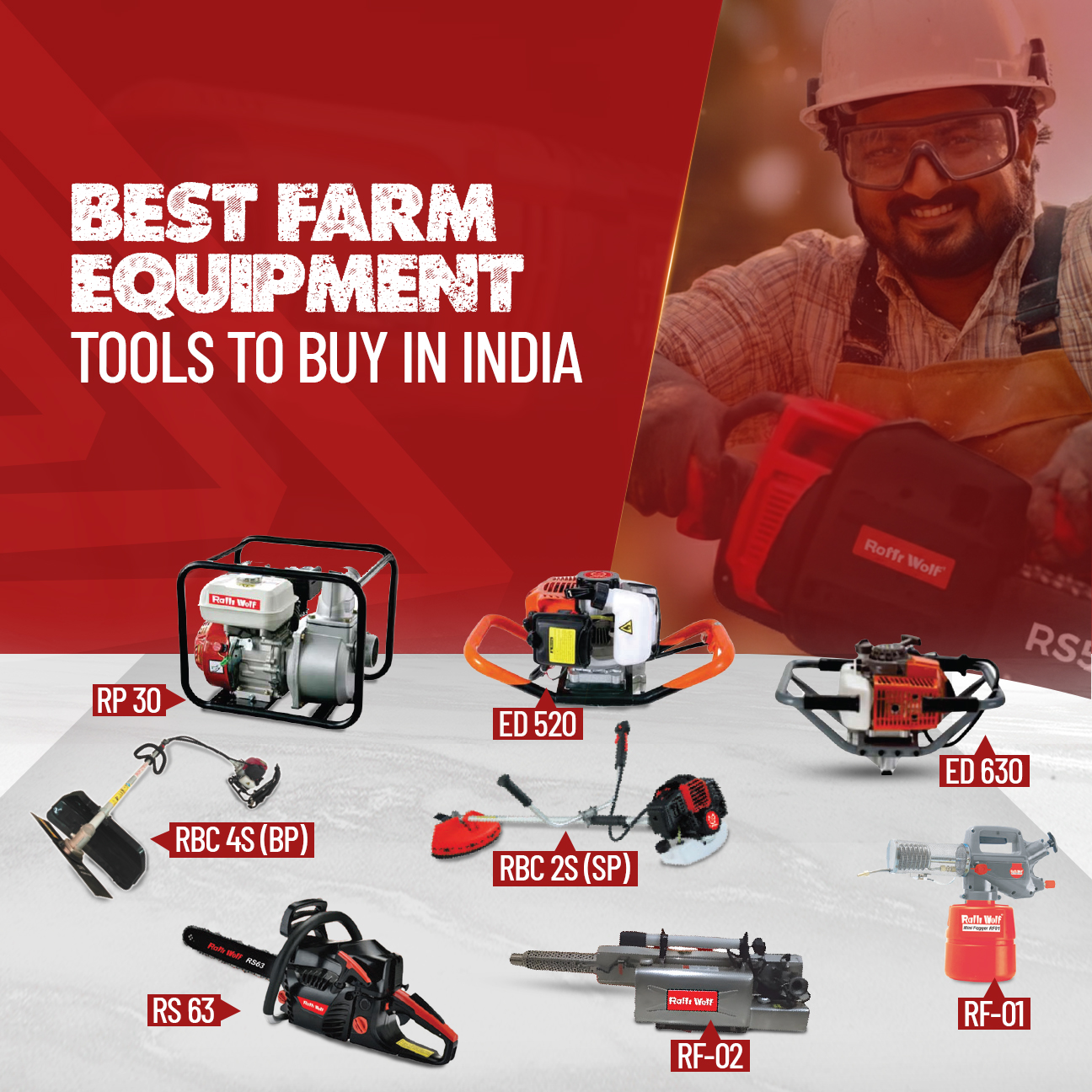 The most used farming equipment tools in India are the water pumpset, Brush Cutters, chainsaws and Earth Auger. These are mostly essential parts from sowing the seeds to harvesting. These superior tools not only cut the crops but also set a perfect stage for next year.