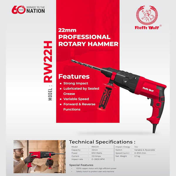 Ralli Wolf, one of the torchbearers in power tool production in India, started its journey more than 60 years ago in collaboration with Wolf UK. Six decades down the line, the company remains firmly committed to providing comprehensive, high-quality solutions across a wide range of segments, including Power Tools, Farm Equipment, Pneumatic Tools, Welding Equipment, Motors, and Accessories.